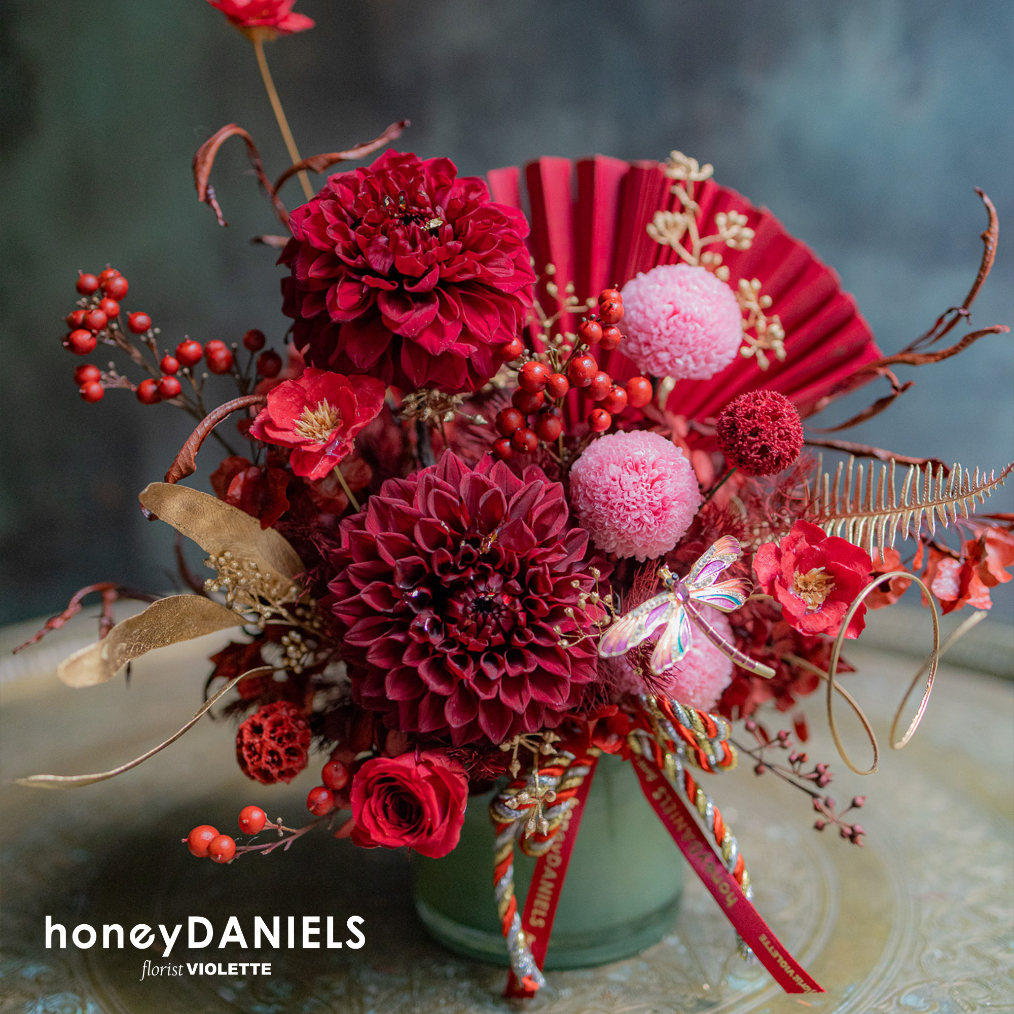 【 蜻蜓綴飾、玻璃花器皆為限量隨機款,由花藝師搭配並隨機出貨。】